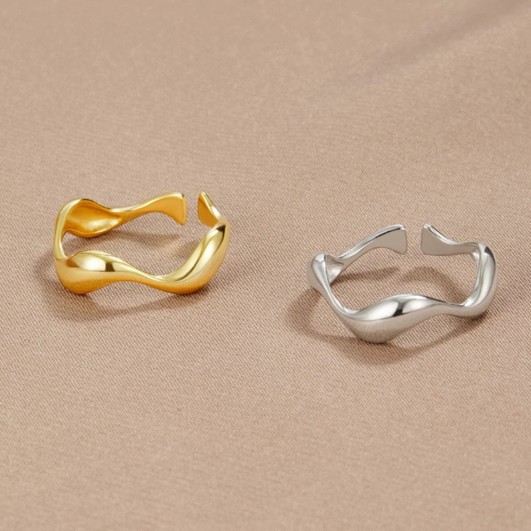 Introducing the Alana Wave Ring, a beautiful and minimalist piece inspired by the graceful movement of ocean waves. This stunning ring is perfect for wearing alone or stacking with other rings to create a unique and personalized look.