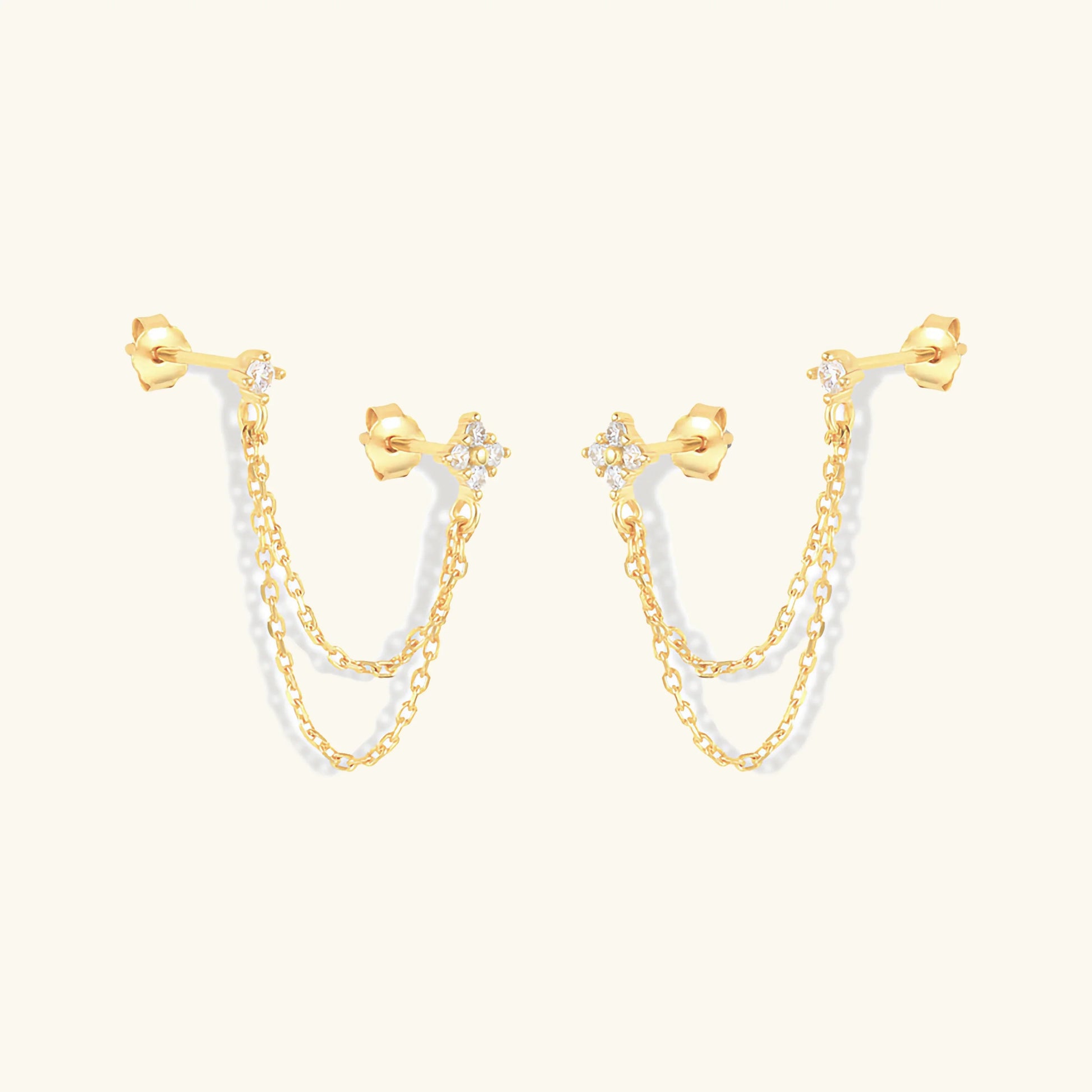 Imogen - Chain Stud Earrings elevate your accessory game by redefining the classic stud earring. Featuring a stunning layer of looping chains and accented by eye-catching diamonds, these earrings blend timeless elegance with a contemporary flair. Designed for your comfort, they are hypoallergenic and waterproof, making them perfect for all-day wear.