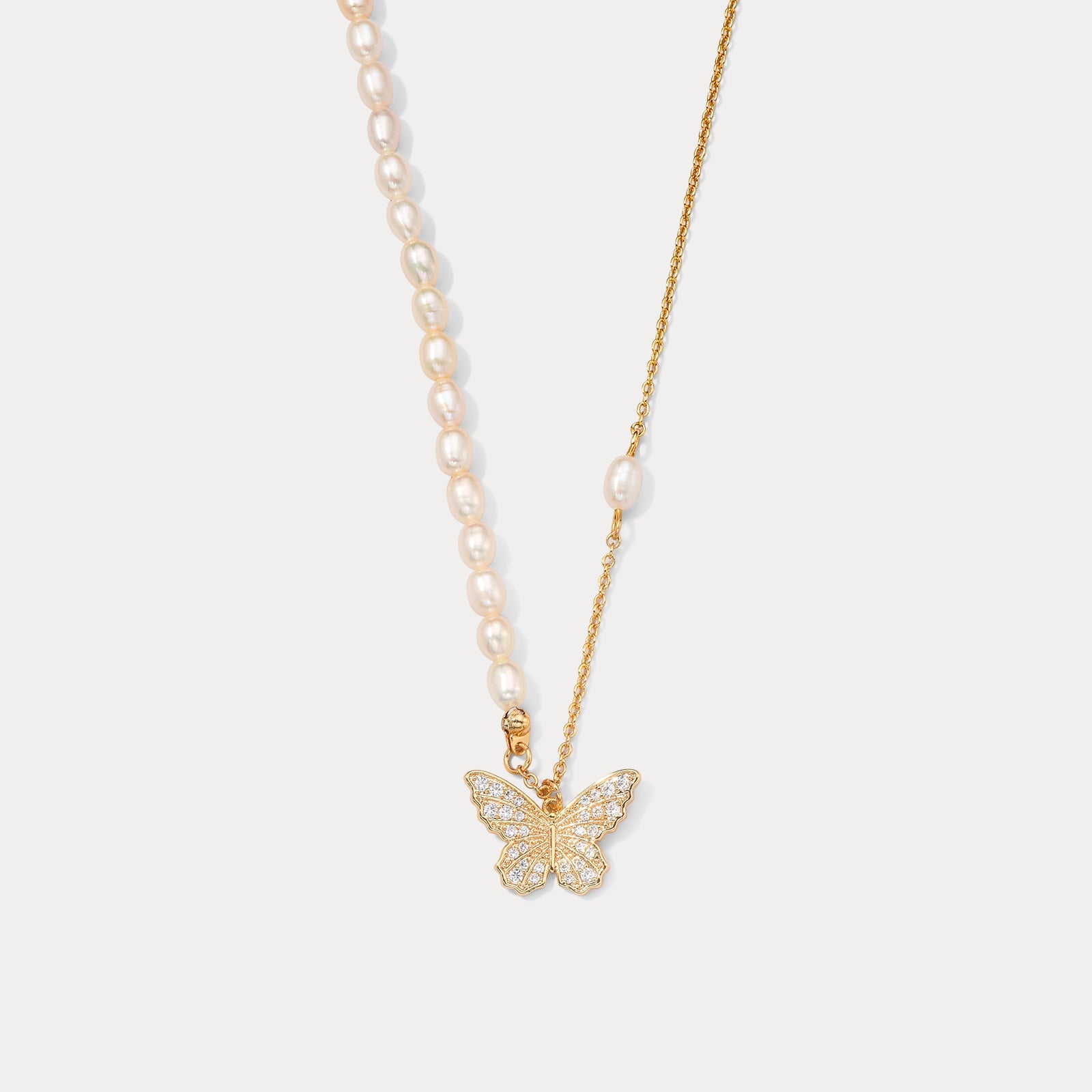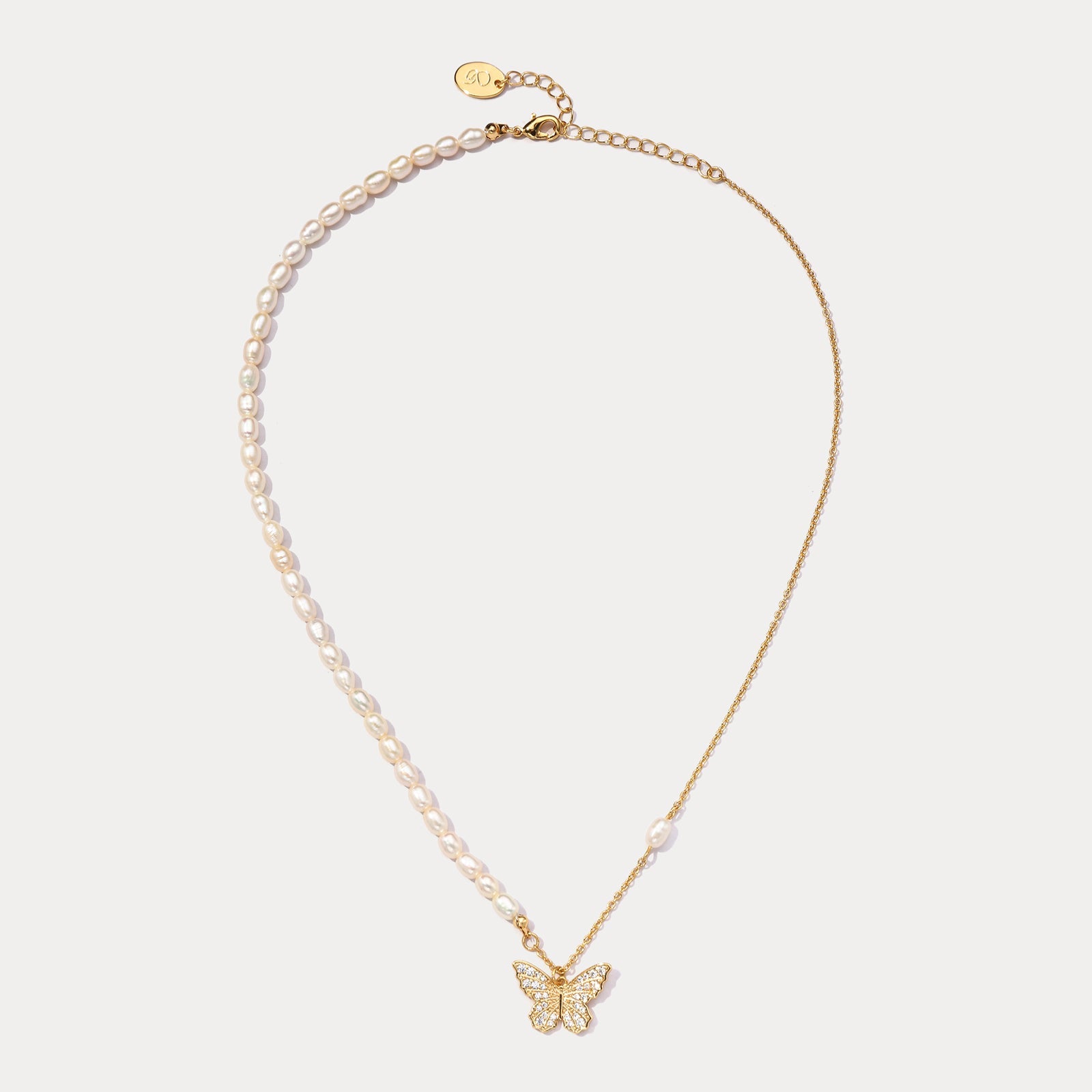 Elevate your jewelry collection with the stunning Kendall - Butterfly Pearl Necklace. This exquisite piece is designed to add a touch of sophistication to any outfit, making it the perfect accessory for both formal and casual occasions. Expertly crafted with luminous freshwater pearls and featuring a delicate butterfly motif, this luxurious necklace is sure to make a lasting impression.