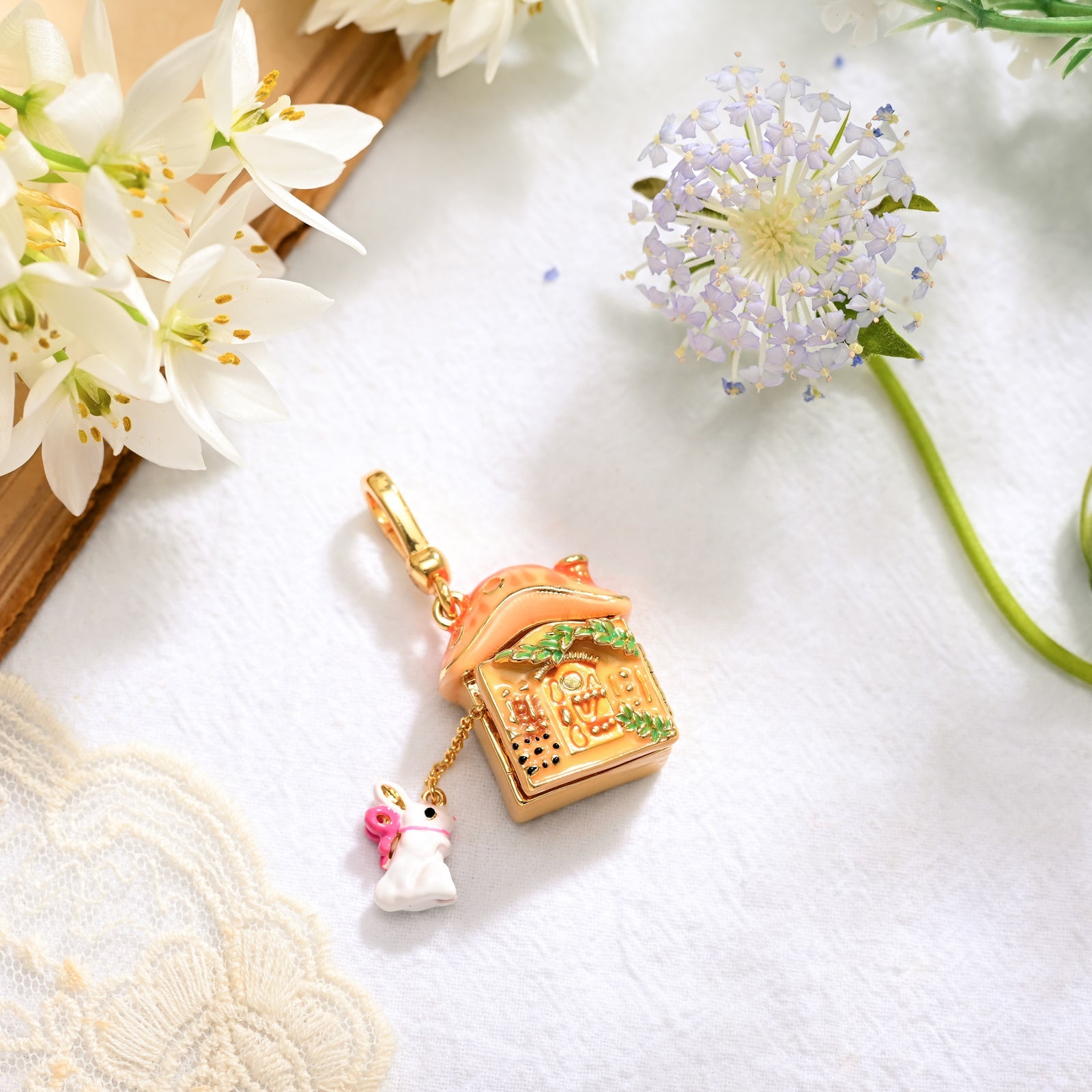 Discover the enchanting Mushroom House Locket Necklace, a whimsical piece of jewelry that beautifully captures the essence of nature and fantasy. This exquisite necklace features a delicate rabbit silhouette gracefully perched atop a charming mushroom house, making it a perfect accessory for those who appreciate elegance and a touch of magic in their everyday style.