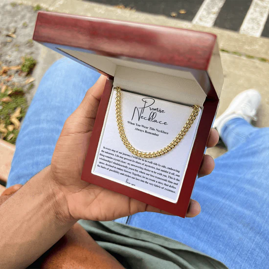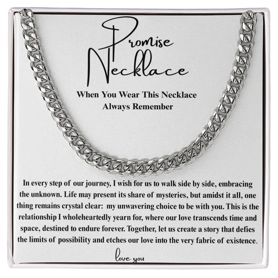 The Promise Necklace For Him serves as a beautiful representation of your love, turning your feelings into a cherished keepsake. This exquisite piece allows him to carry your affection close to his heart, reminding him of your bond every day.