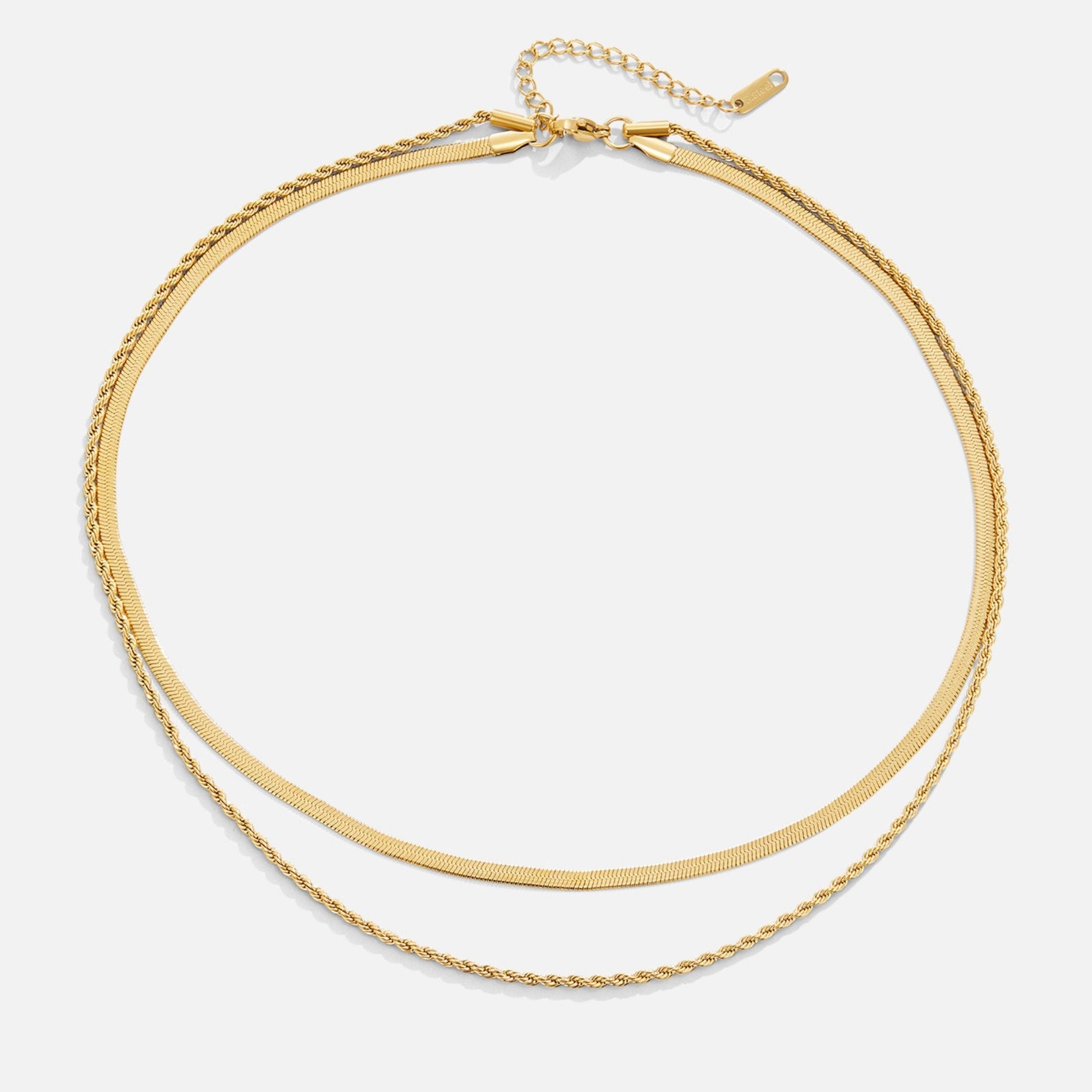 Introducing the Sabrina - Layered Necklace, a stunning piece designed to elevate your jewelry collection. Crafted with high-quality waterproof stainless steel, this necklace ensures that you never have to worry about fading or tarnishing, making it a durable and stylish choice for everyday wear.