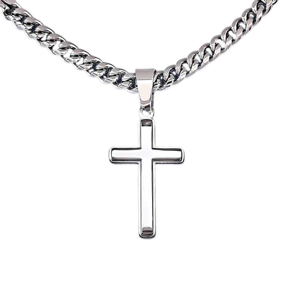 This exquisite stainless steel cross merges timeless symbolism with a contemporary design, making it a perfect accessory for any occasion.