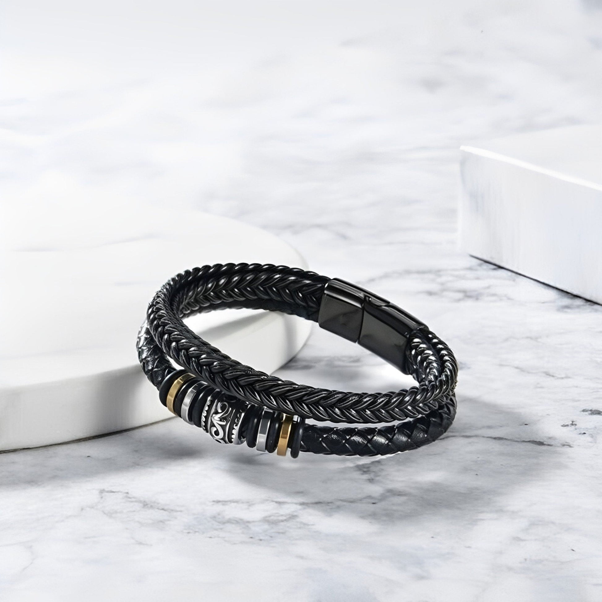 • Made of high-quality eco-leather, this bracelet is designed to last a lifetime.